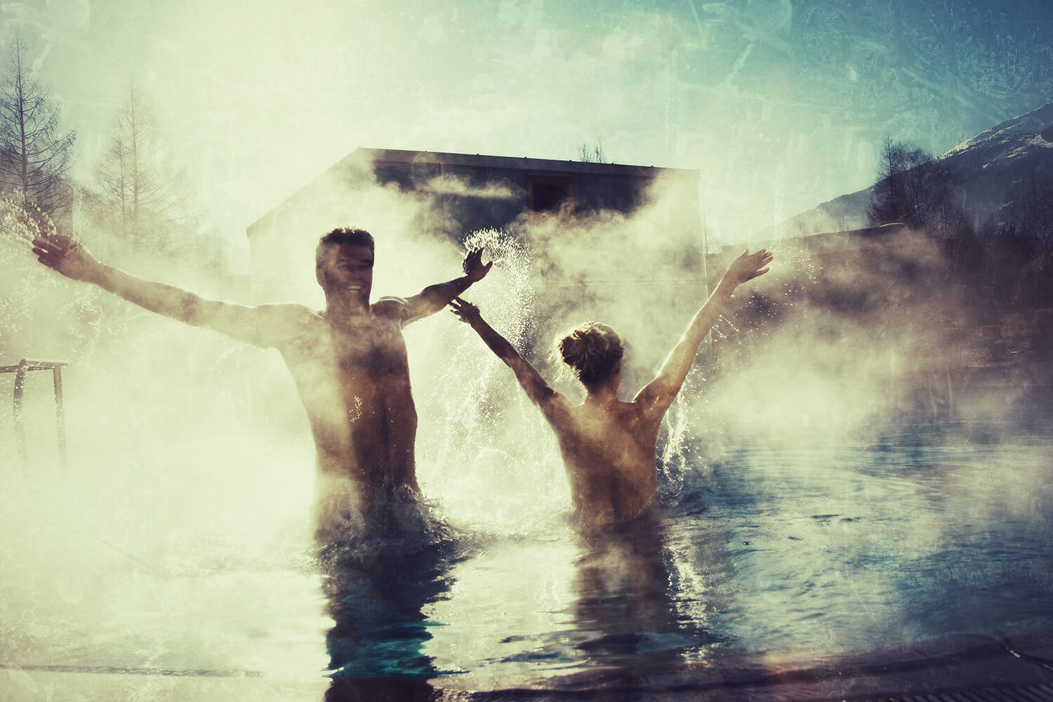 Ohne nasse Skiklamotten, Nebenbuhler, zwanghafte Selbstinszenierungen, soziale Bewertungen durch ablehnende Männer und Frauen und dem Hammerwerfer in der Gedächtnishalle am nächsten Tag (= Kopfschmerz + Kater) lebt es sich einfach leichter. Nackt wie Gott uns schuf sind wir alle gleich und wollen nur das eine: entspannen.