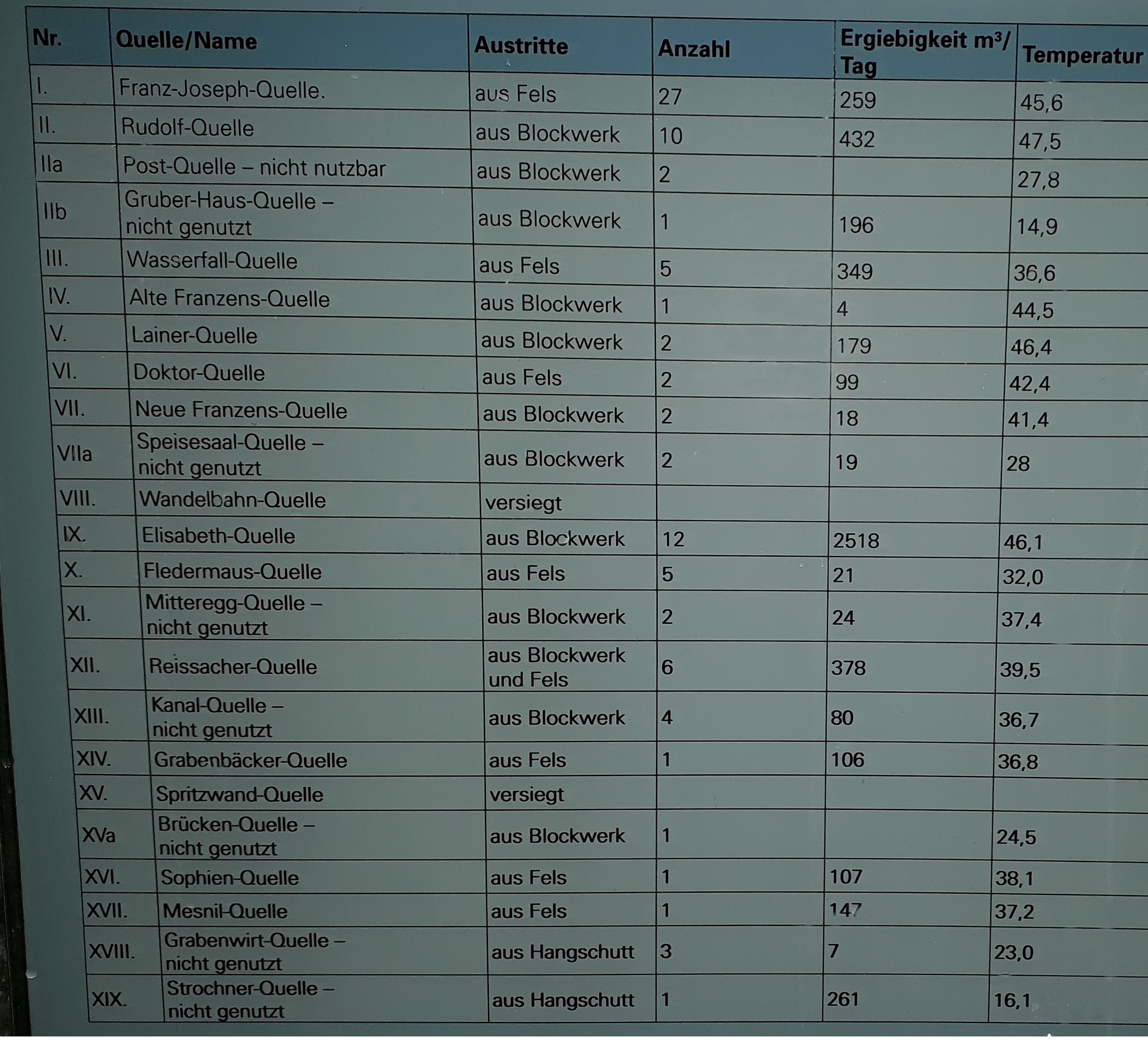 Übersicht über alle Gasteiner Quellen: