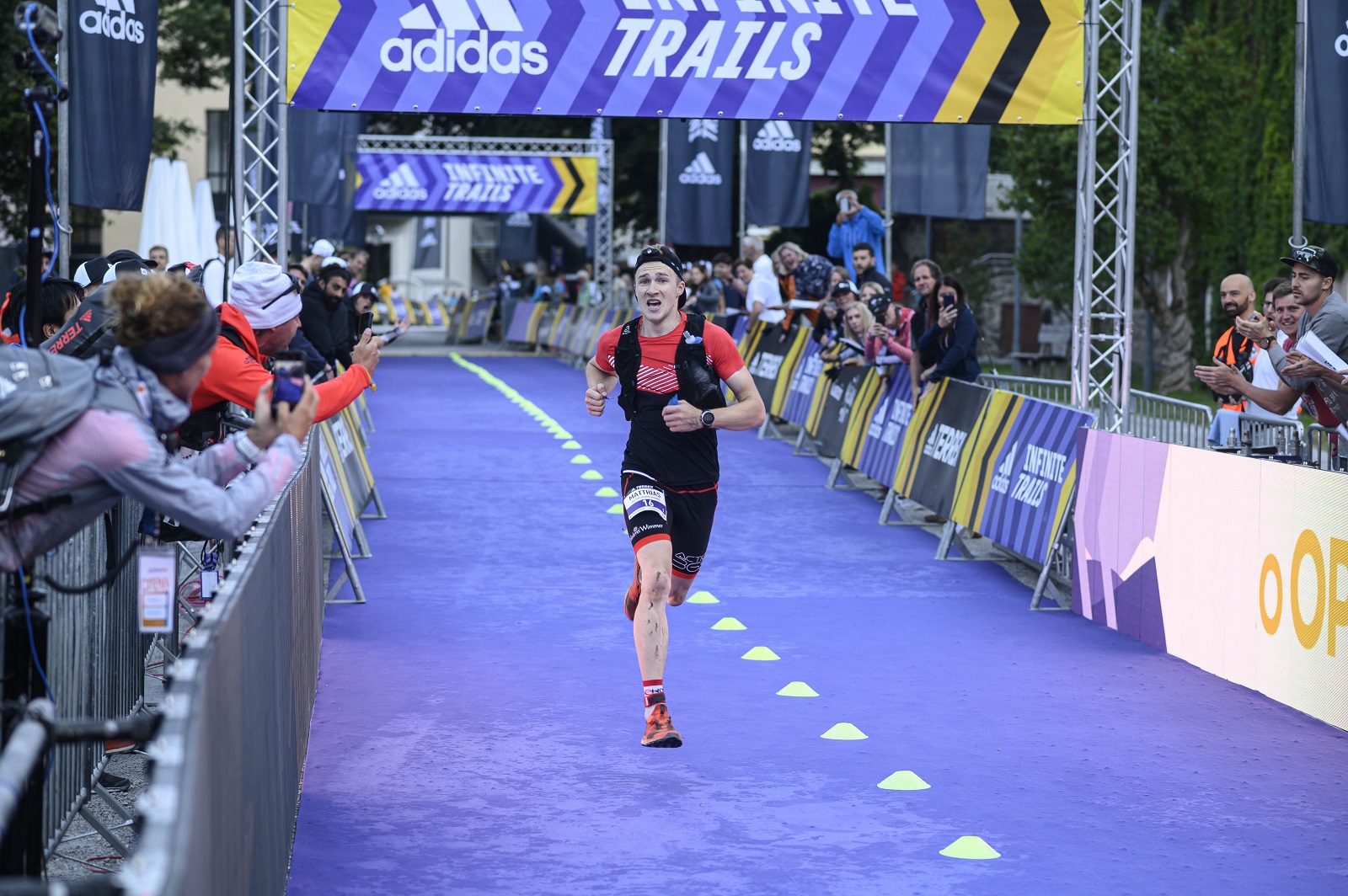 Matthias: Das ganze Event-Dorf, die Alpenarena, die ganze Hütten und Tippies, einfach eine unglaubliche Atmosphäre und zwei Tage später schon sind dann plötzlich wir da drinnen gestanden. Die ganze Woche hat der Ort richtig gebebt, mit Zuschauern, Läufen und allen Helfern.