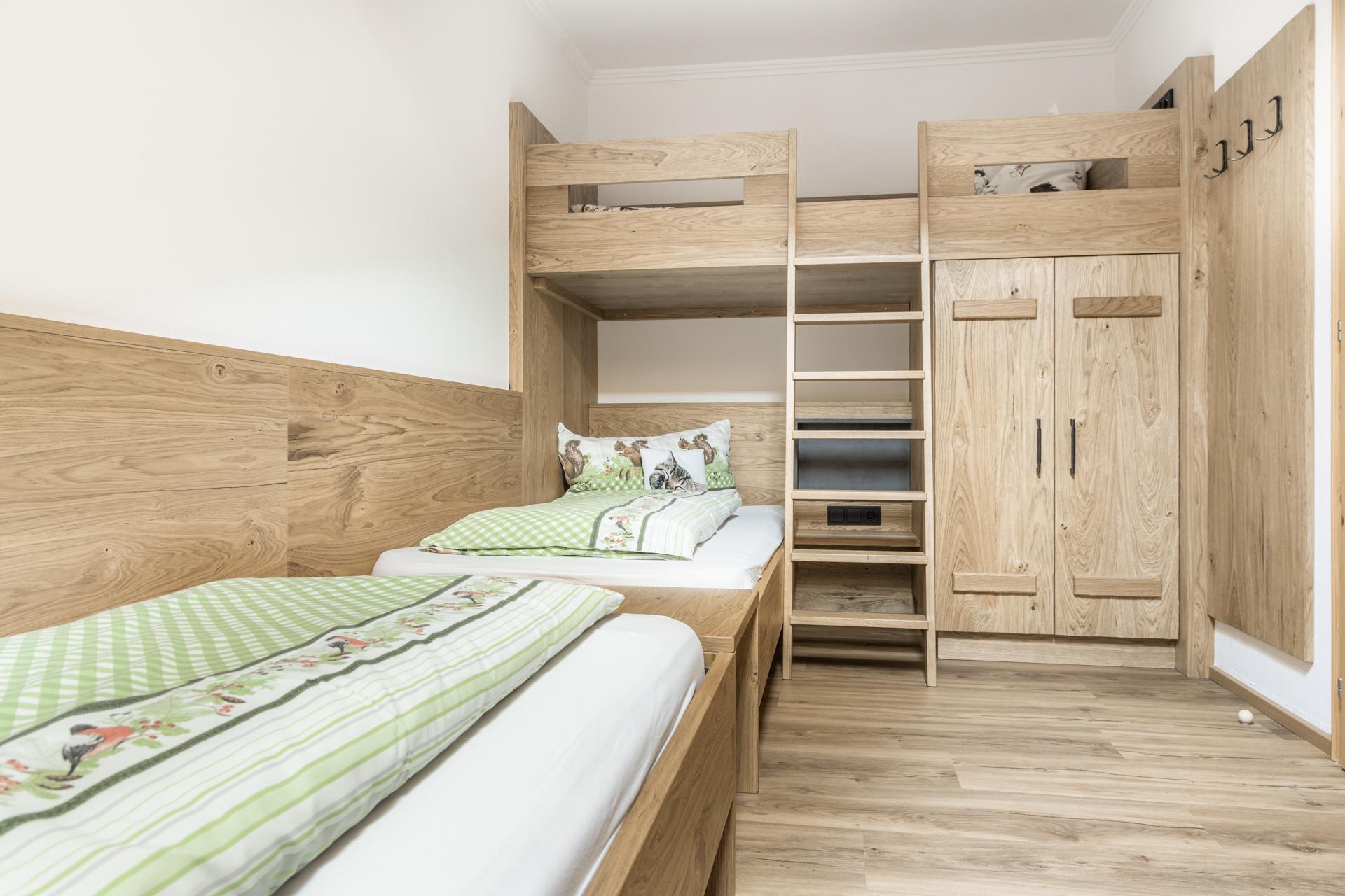 Whether family vacation in the holiday apartment or partner recreation in the double room – the Moarbauer farm offers matching accommodation to everyone. Our four 50-60m² apartments with special children's rooms offer space for 2-6 people. Furnished with lots wood and love for detail, you will already feel at home here when first entering. Dishwasher, microwave, stove, baking oven, kettle and coffee machine round off the comfort of the apartment kitchens. During your partner vacation a stay in our bright and generous rooms that come with a cosy sitting corner, a new bathroom, and cable TV as well as with a balcony is recommended.