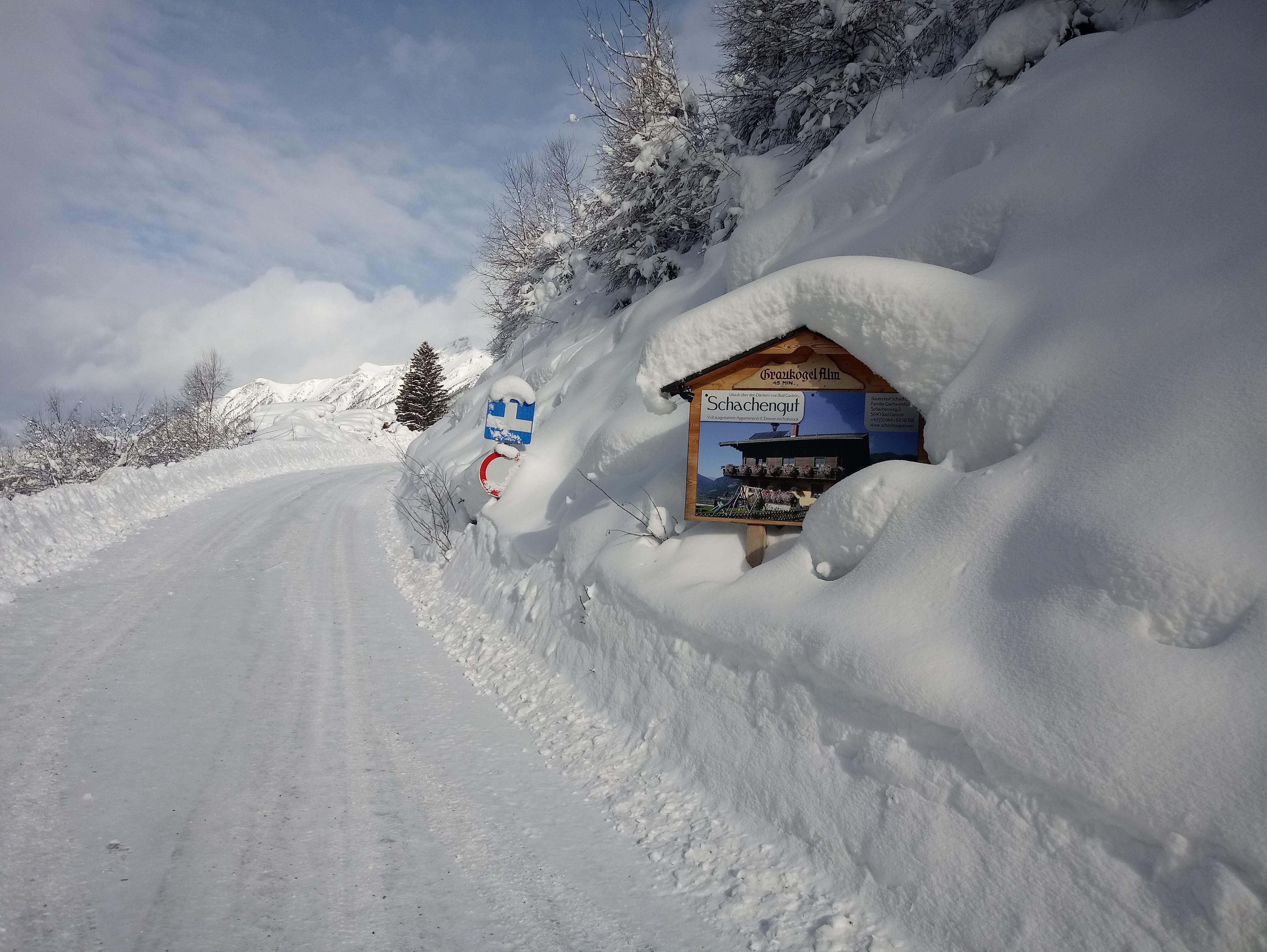 From Bad Gastein train station, continue approx. 300m, turn left before the railway overpass, immediately turn right next to the yellow apartment buildings. End of street, left across the bridge (Güterweg Schachen), after 2 switchbacks turn right at the junction into a dead-end street.