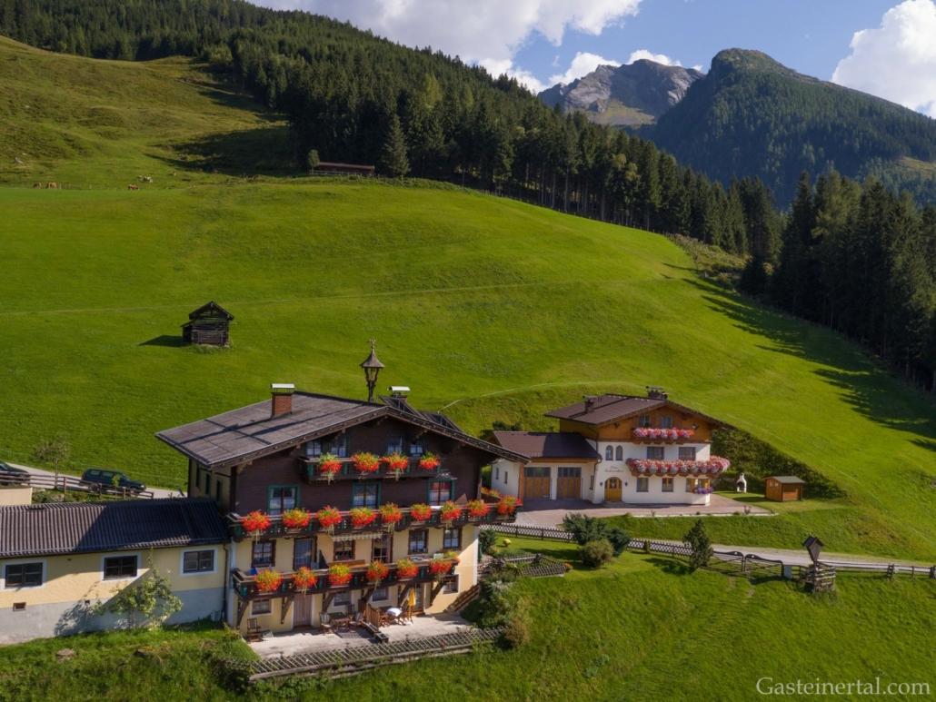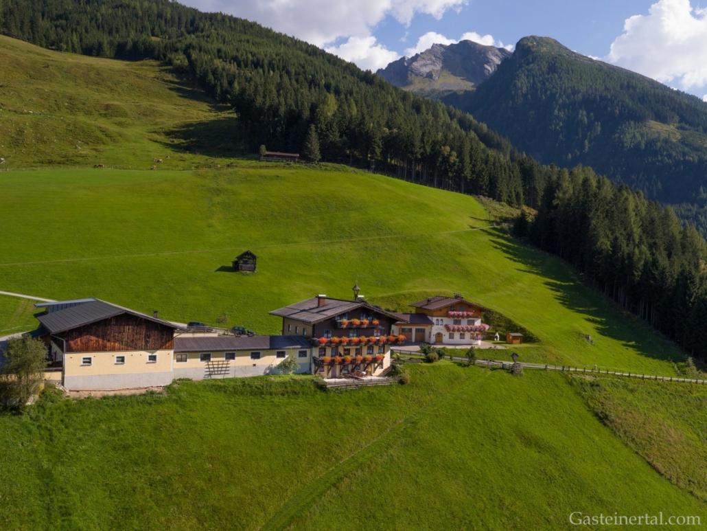 Bad Gastein and the mountain scenery of the National Park Hohe Tauern always remains in a panoramic view: located directly on the ski slopes of Graukogel in winter and surrounded by fragrant flower meadows in summer. The farm is located at 1.300 m and offers authentic furnishings – a feel-good place for a cozy and comfortable vacation on a farm. The beautiful natural landscape of the Gastein Valley is always in view.