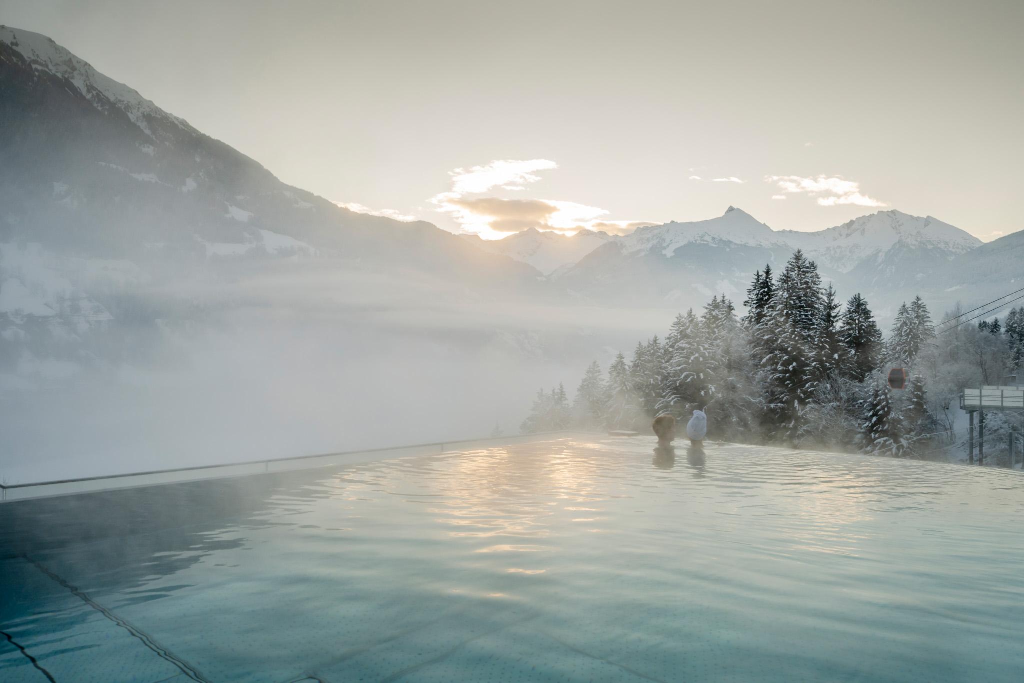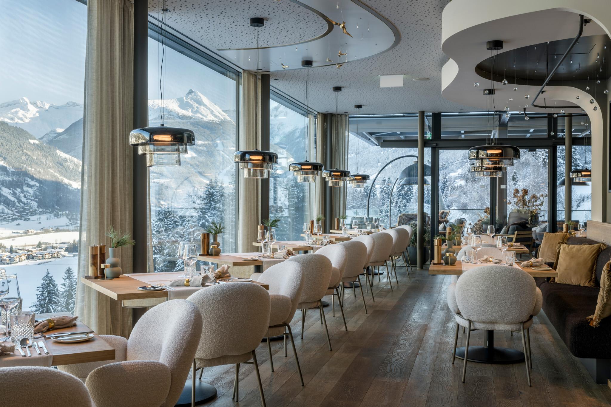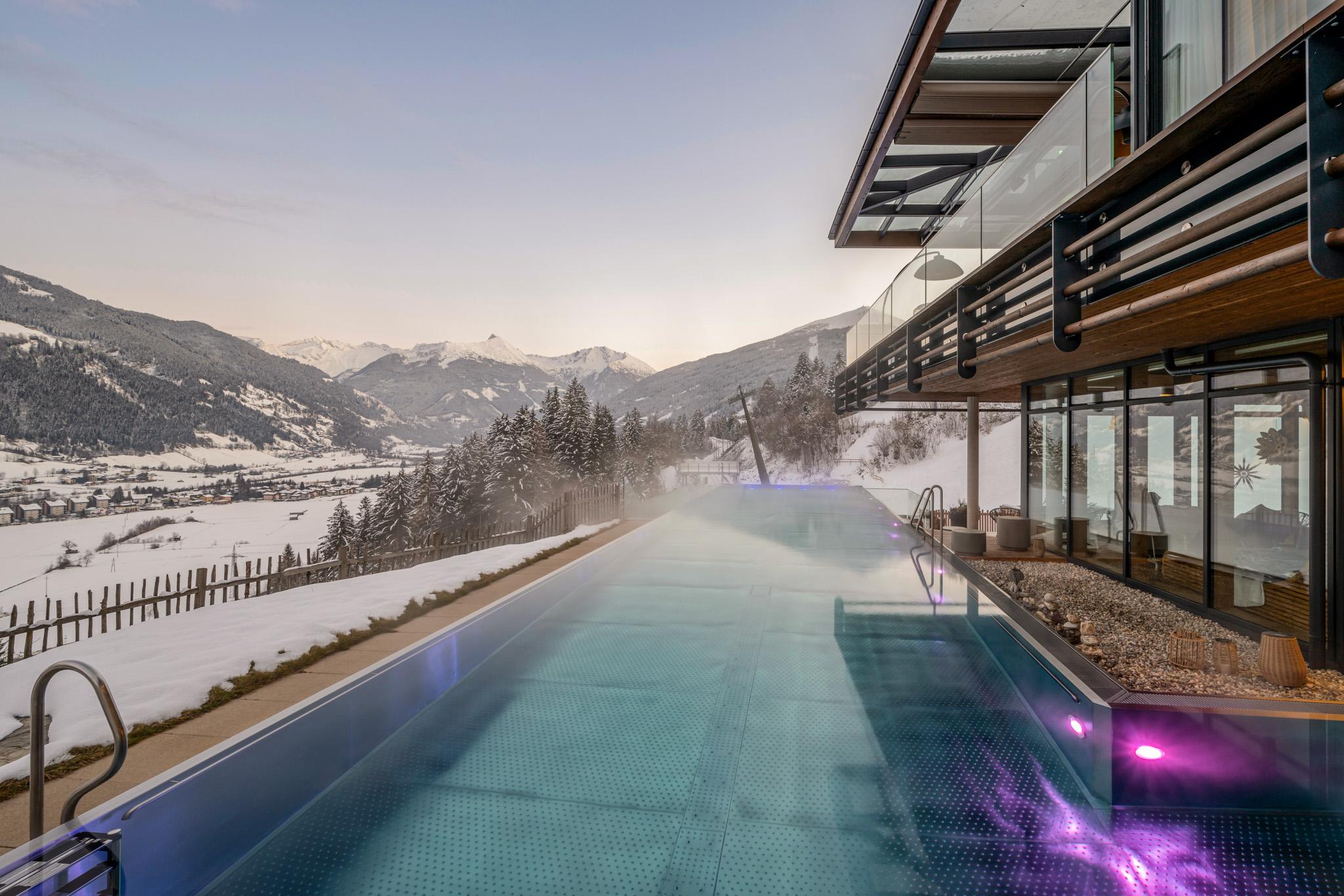 A highlight in every season is our free-standing infinity pool (22 m), combined with a panoramic sauna, gold mine, and exclusive spa treatments.
