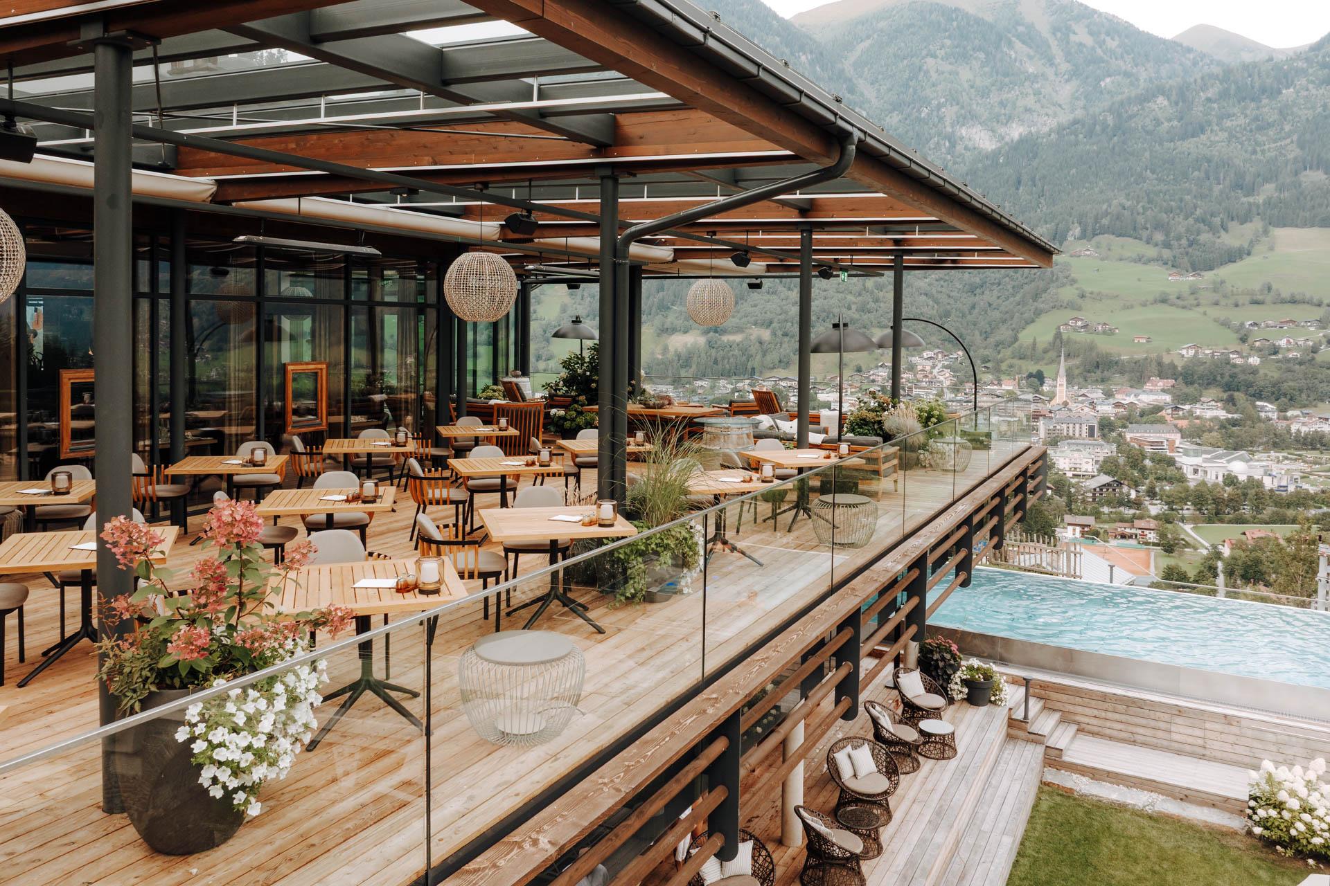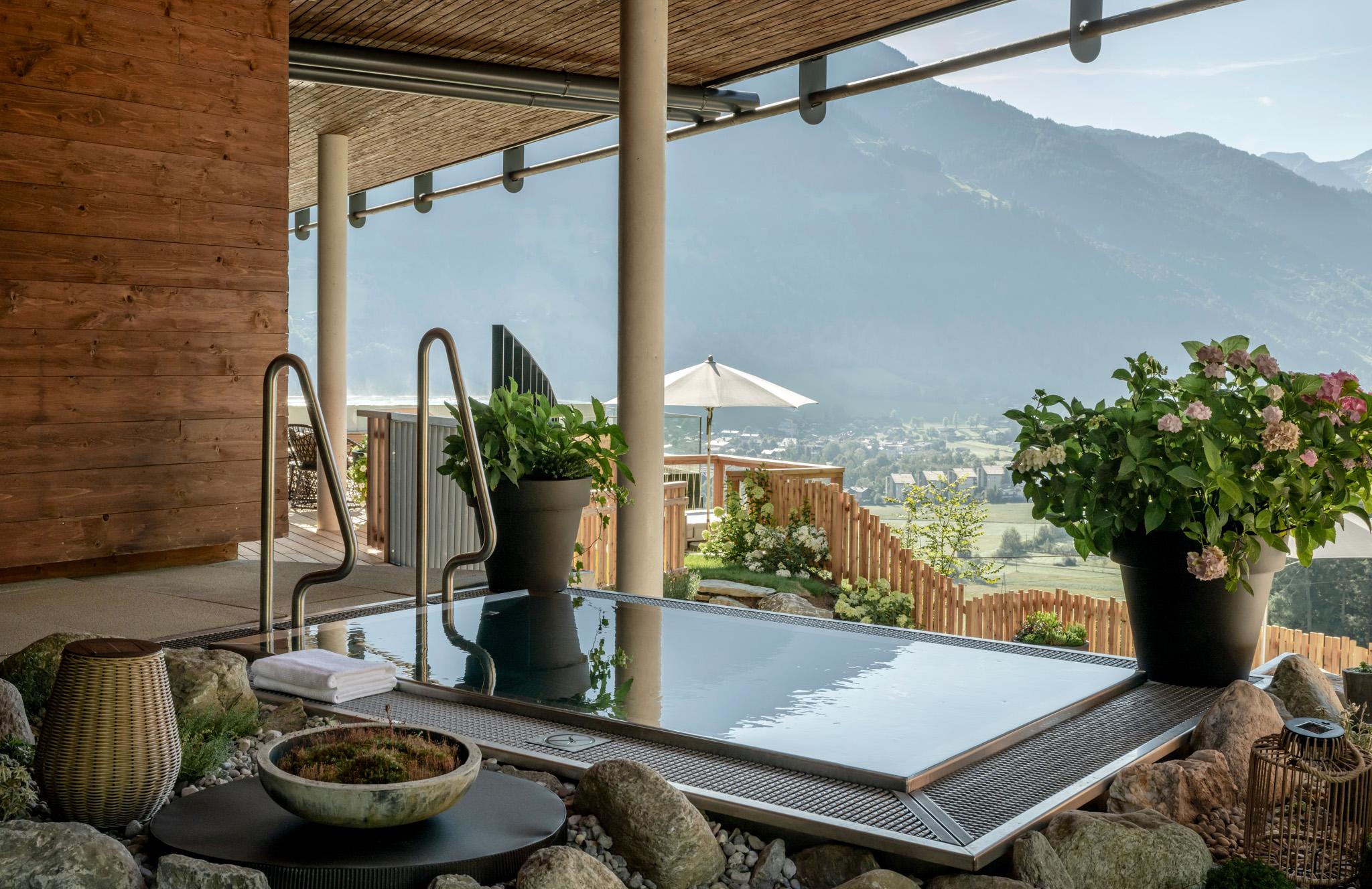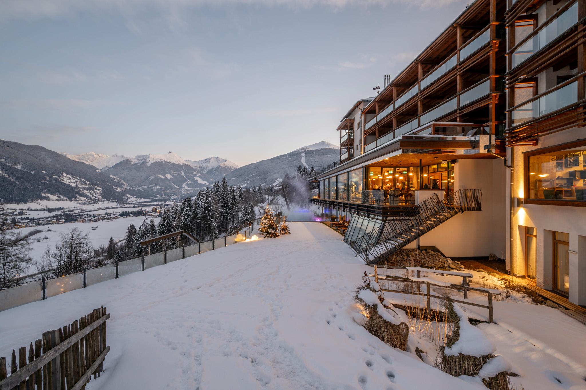 A highlight in every season is our free-standing infinity pool (22 m), combined with a panoramic sauna, gold mine, and exclusive spa treatments.