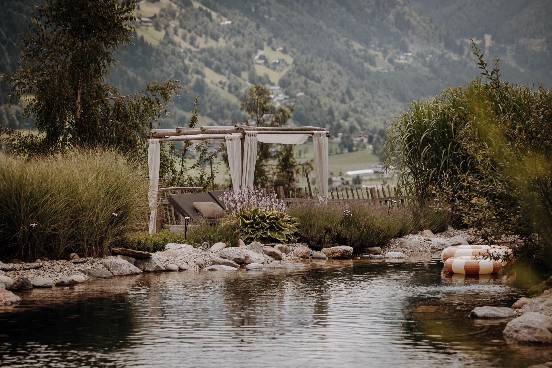 In summer, our natural swimming lake with sandy beach, beach bar, and daybeds awaits you – perfect for hot days in the mountains. For the active, the Gastein Valley offers a wide range of idyllic hiking trails, golfing opportunities, and modern e-bikes.