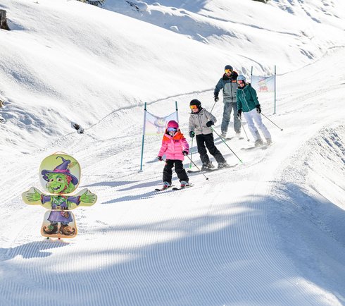 The Gasti Snow Park provides ideal conditions for newbies in winter sports. Beginners take their first steps on the magic carpet and practise their first turns on the gently sloping ski run. Taking the button lift, they can go up and ski down as many times as they wish.