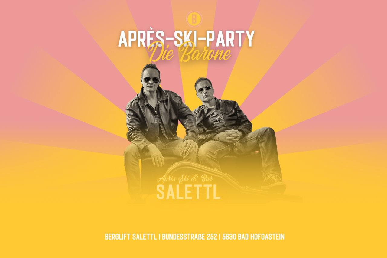 Live at Salettl Berglift Gastein – DIE BARONE. An afternoon that leaves you wanting more: rousing music and an atmosphere that instantly wins you over. From 3:30 p.m., the band fills the Salettl with familiar hits and an energy that lasts all afternoon. Just come by, celebrate together, and enjoy the moment, because with the Barons, a good mood is not only promised, but guaranteed.