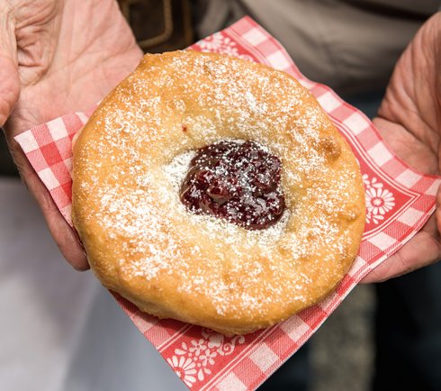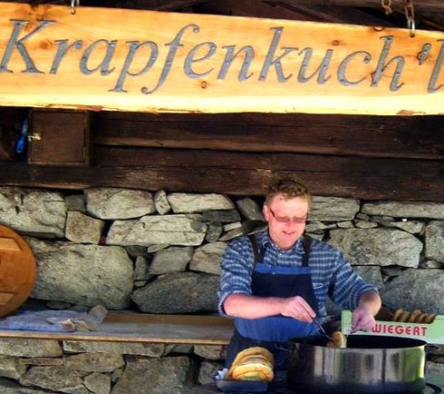 Stop by our doughnut kitchen and learn how to make the most delicious farmer's doughnuts yourself on Saturdays with hut host Michael - fresh, crispy and traditional!
