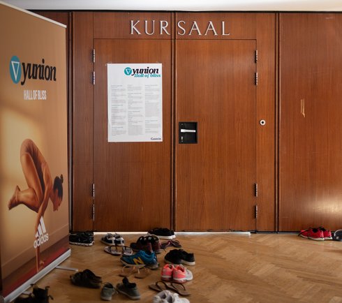 The large seminar room at the Bad Hofgastein Congress Center is the most versatile room at the yunion Yoga Festival. Massage workshops, business coaching and yin yoga classes take place here. The acoustics in this room are excellent, and the floor-to-ceiling windows provide plenty of brightness for the workshops.