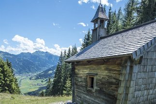 Nach der Taxifahrt zur Huberalm startet die Wanderung Richtung Drei Waller Kapelle, ein uralter Wallfahrtsplatz.