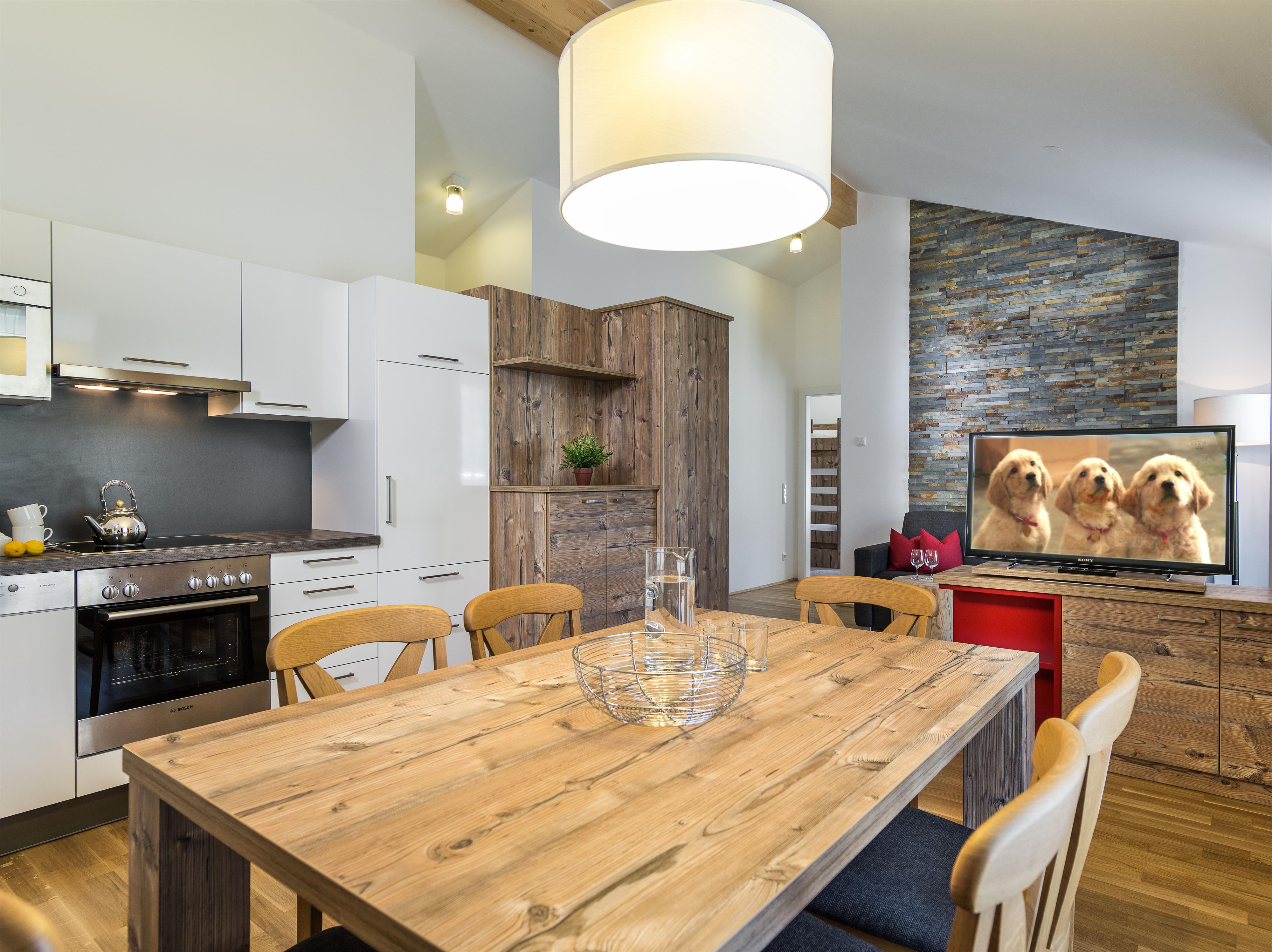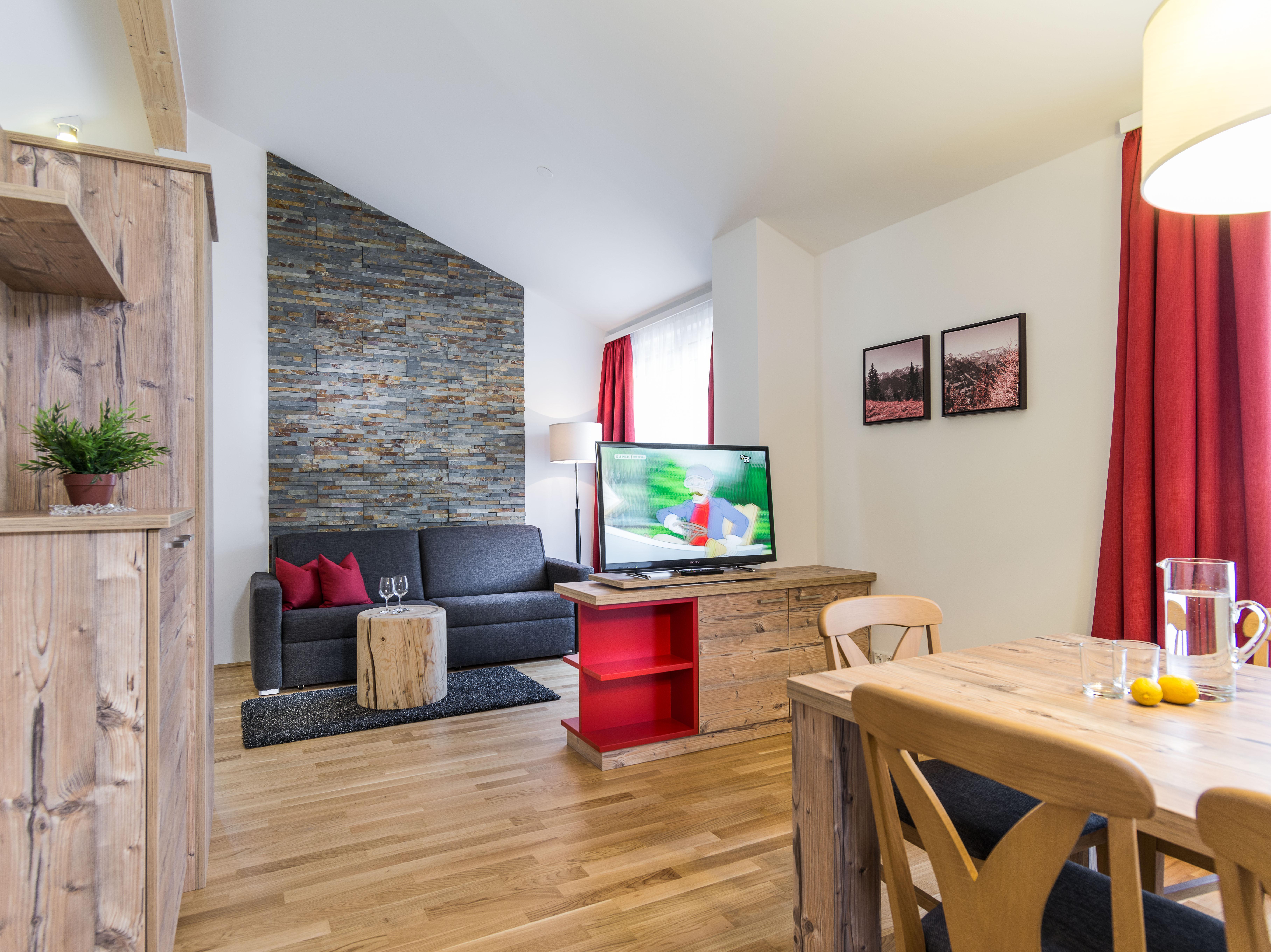 Wo alpiner Lifestyle gelebt wird – erst 2012 eröffnet, bestechen unsere fünf, rauchfreien Apartments durch ihre zeitgenössische und stilvolle Einrichtung. Hochwertige Vollholzmöbel und warme Farben verleihen den 50-69m² großen und für 2-6 Personen ausgelegten Wohnungen Charme und einen eigenen Charakter. Im ersten Stock oder im Dachgeschoss gelegen, genießen Sie hier schon beim Aufstehen einen unvergesslichen Blick auf die Gasteiner Berge. Alle unsere Wohnungen halten eine voll ausgestattete Küche bereit, sodass Sie aktive Ski- und Wandertage mit einem selbst zubereiteten Abendessen ausklingen lassen können.