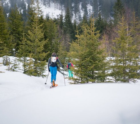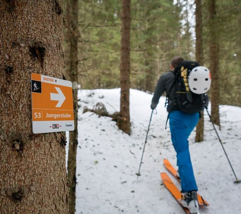 Ausgangspunkt dieser Skitour ist das Skizentrum Angertal. Zu Beginn entlang des Skiweges in Richtung Hirschen Hütt’n führt der Weg weiter ins hintere Angertal. Der Pfad zweigt links vom Weg ab und führt durch einen Bergurwald bergauf. Das tief verschneite Seitental wirkt fast schon kitschig. Wenn sich die Bäume zu lichten beginnen, ist es nicht mehr weit. Die Jungeralm empfängt hungrige und durstige Tourengeher herzlich und lädt zum Verweilen ein. Die Abfahrt erfolgt über die B20 (schwarze Piste) oder über den Skiweg B21 zurück ins Angertal.