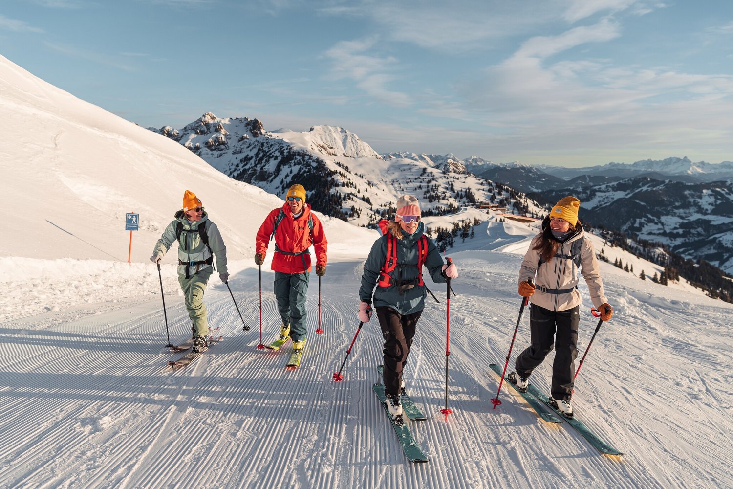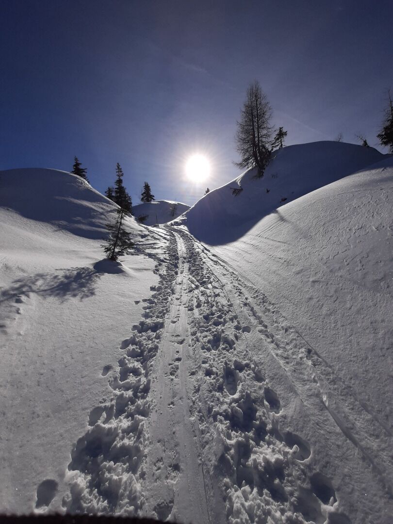 eine gut ausgeschilderte Abzweigung, an welcher der Skitourenweg bergauf