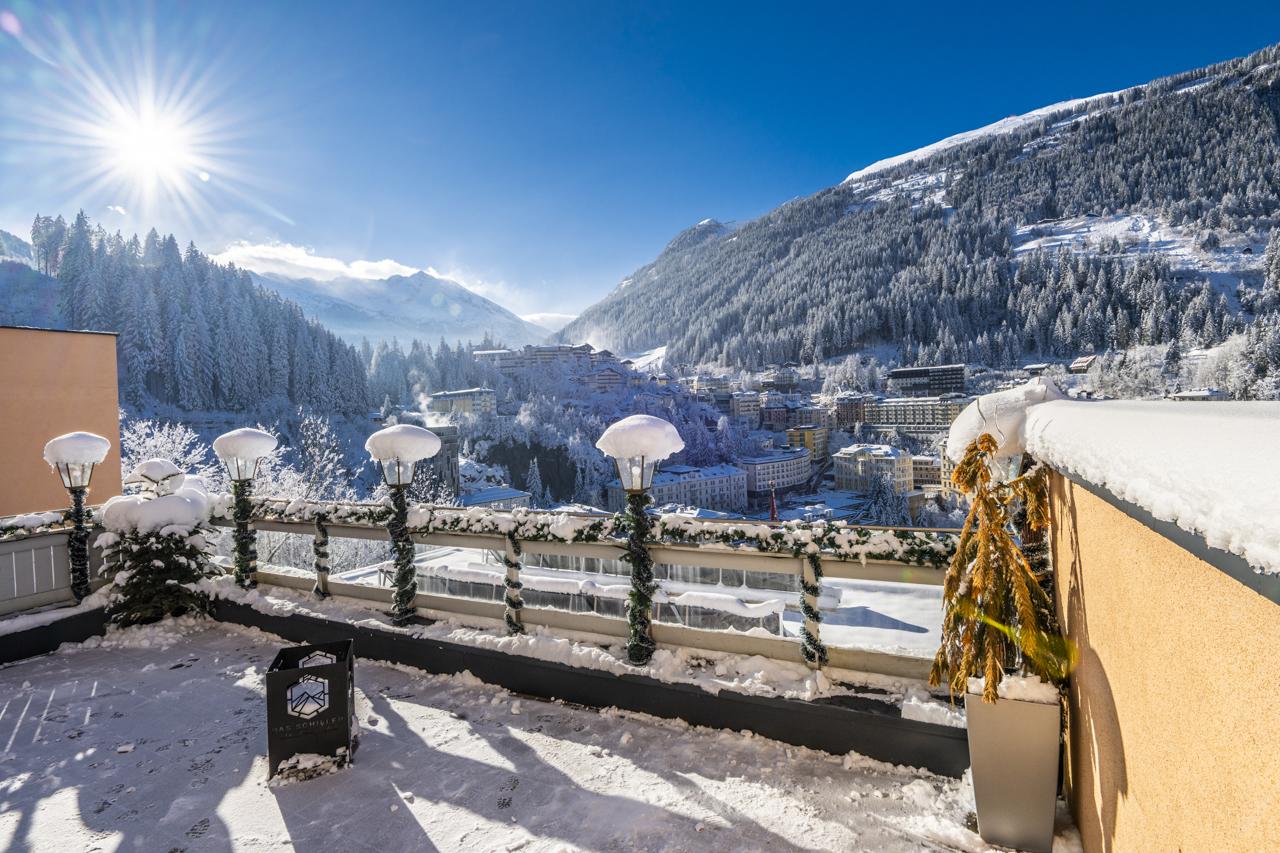 Above the world's unique waterfall and with a direct beautiful view of the historic center of Bad Gastein, our new Panorama Apartment House & Viewing Café Schiller presents itself.