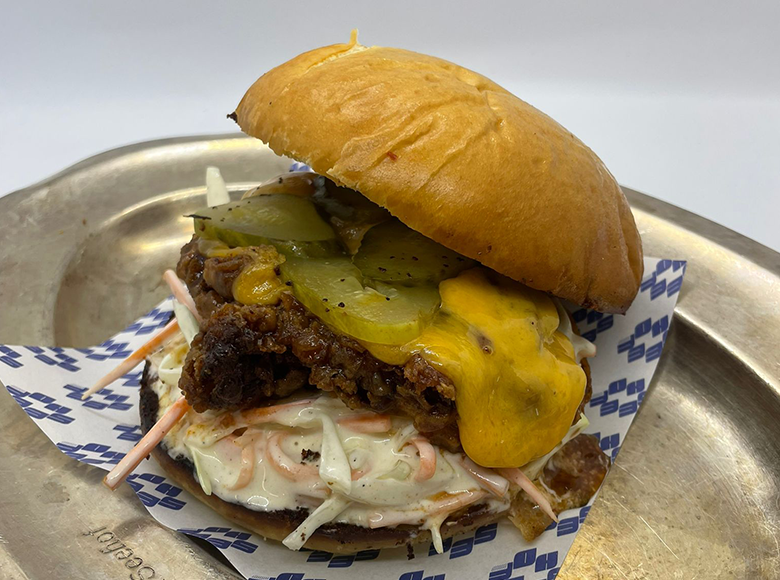 Korean fried Chicken Burger mit Kimchimayo und Kraut