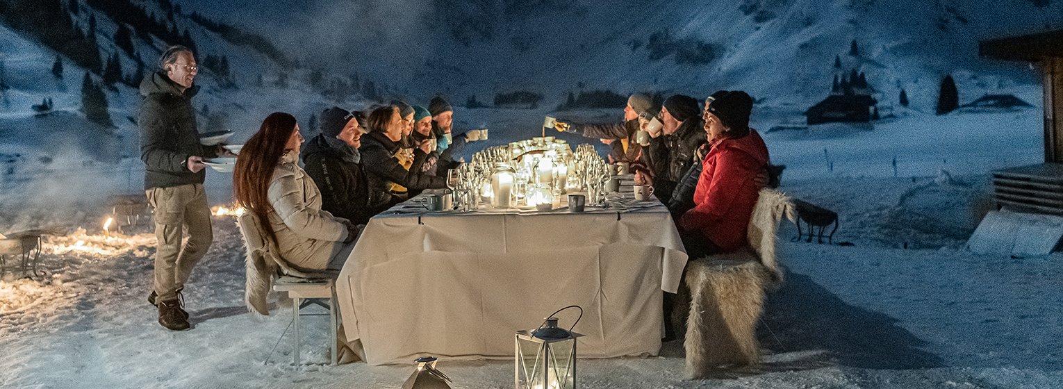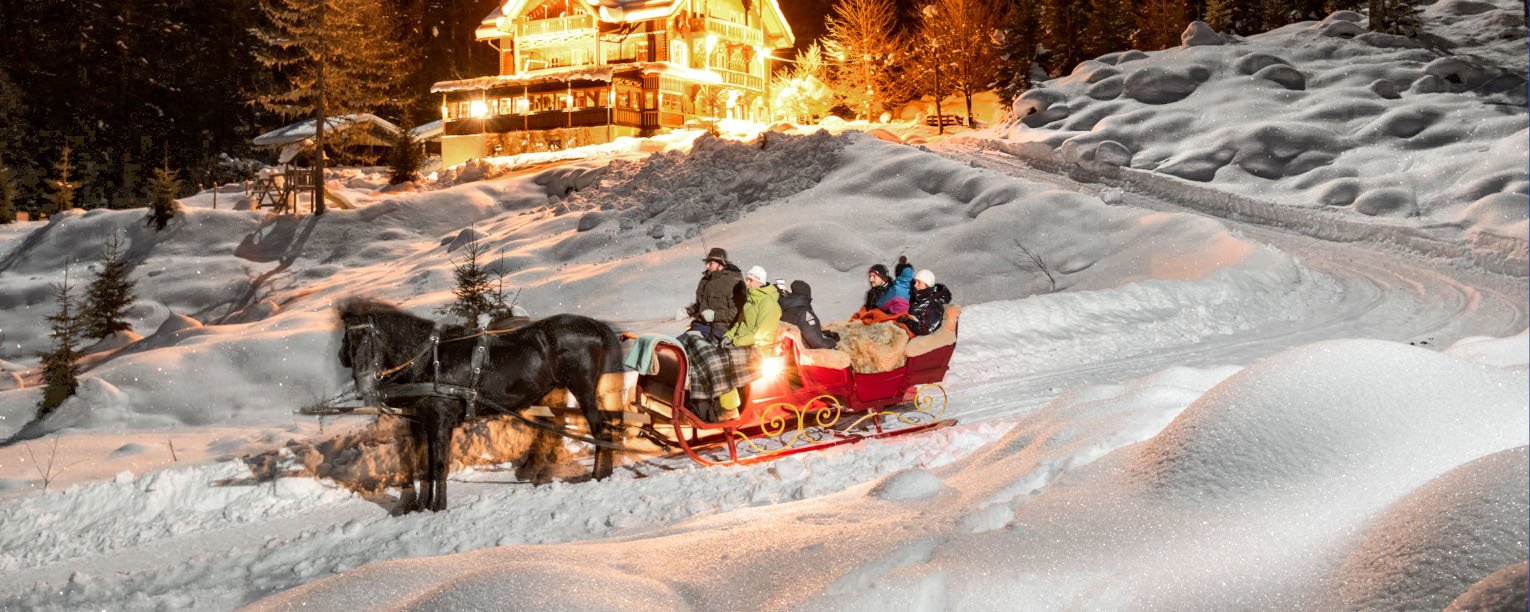 De Culinaire Winterreis neemt je mee op een schilderachtige tocht door het besneeuwde Kötschachtal, gecombineerd met een fakkelwandeling en een ritje met de paardenslee - een traktatie voor alle zintuigen.
