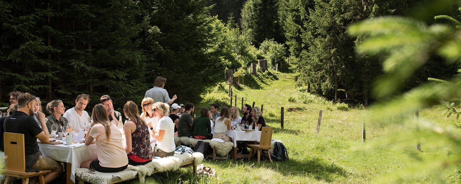 Bij de Wald:Brunch in Angertal worden ontbijt en lunch gecombineerd tot een echte culinaire belevenis - midden in het bos! Na een wandeling van 30 minuten door de prachtige natuur bij Bad Hofgastein word je verwend met een 7-gangenmenu bij de Wald:Brunch.