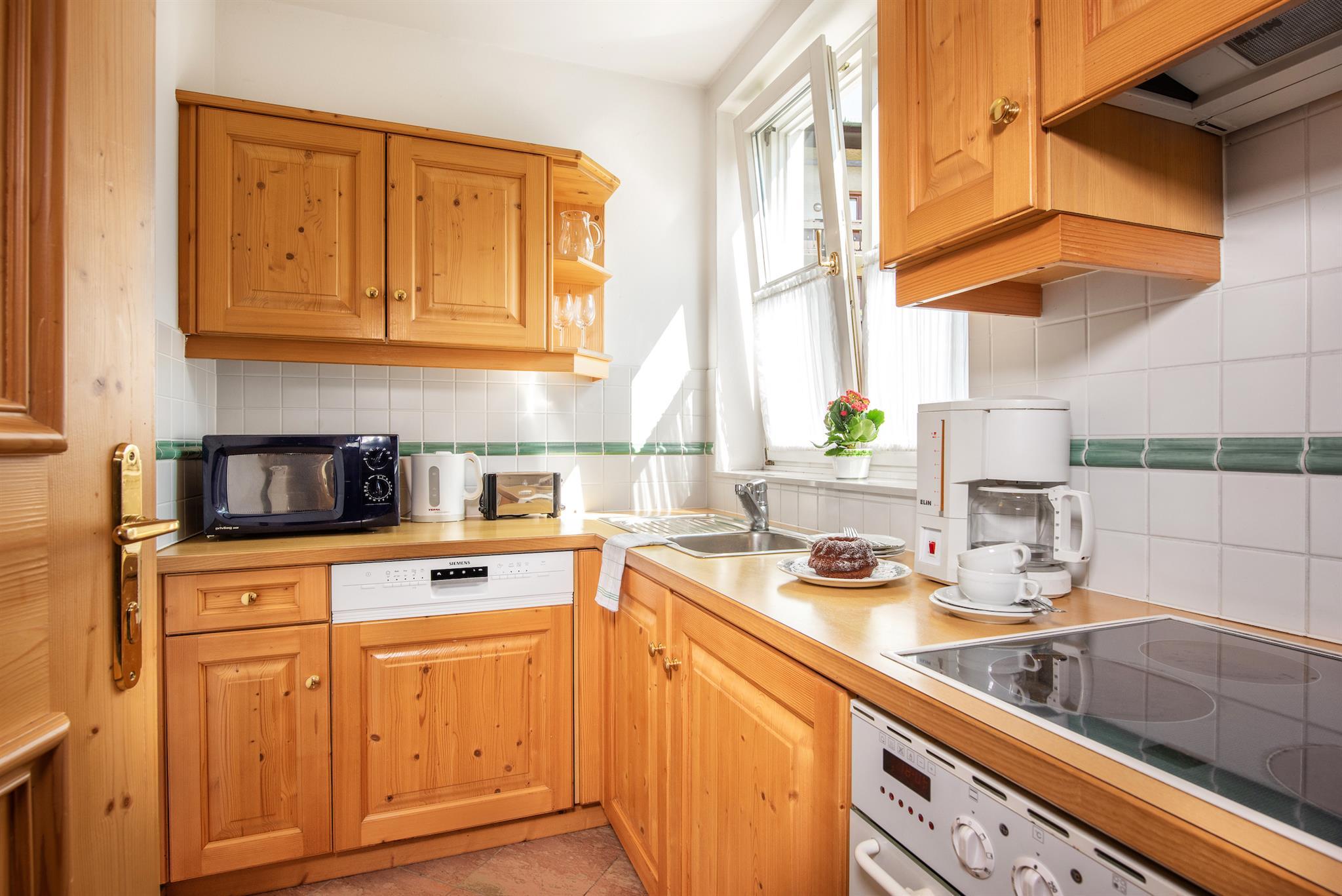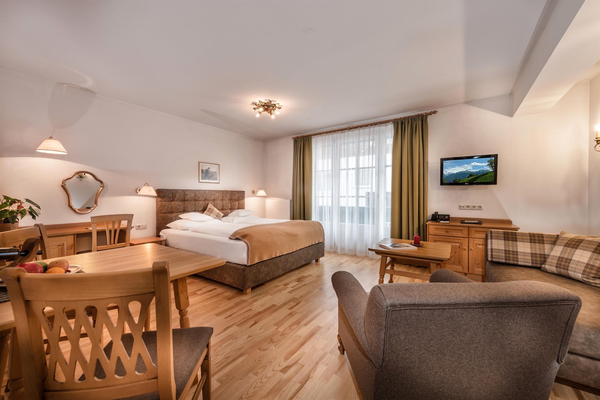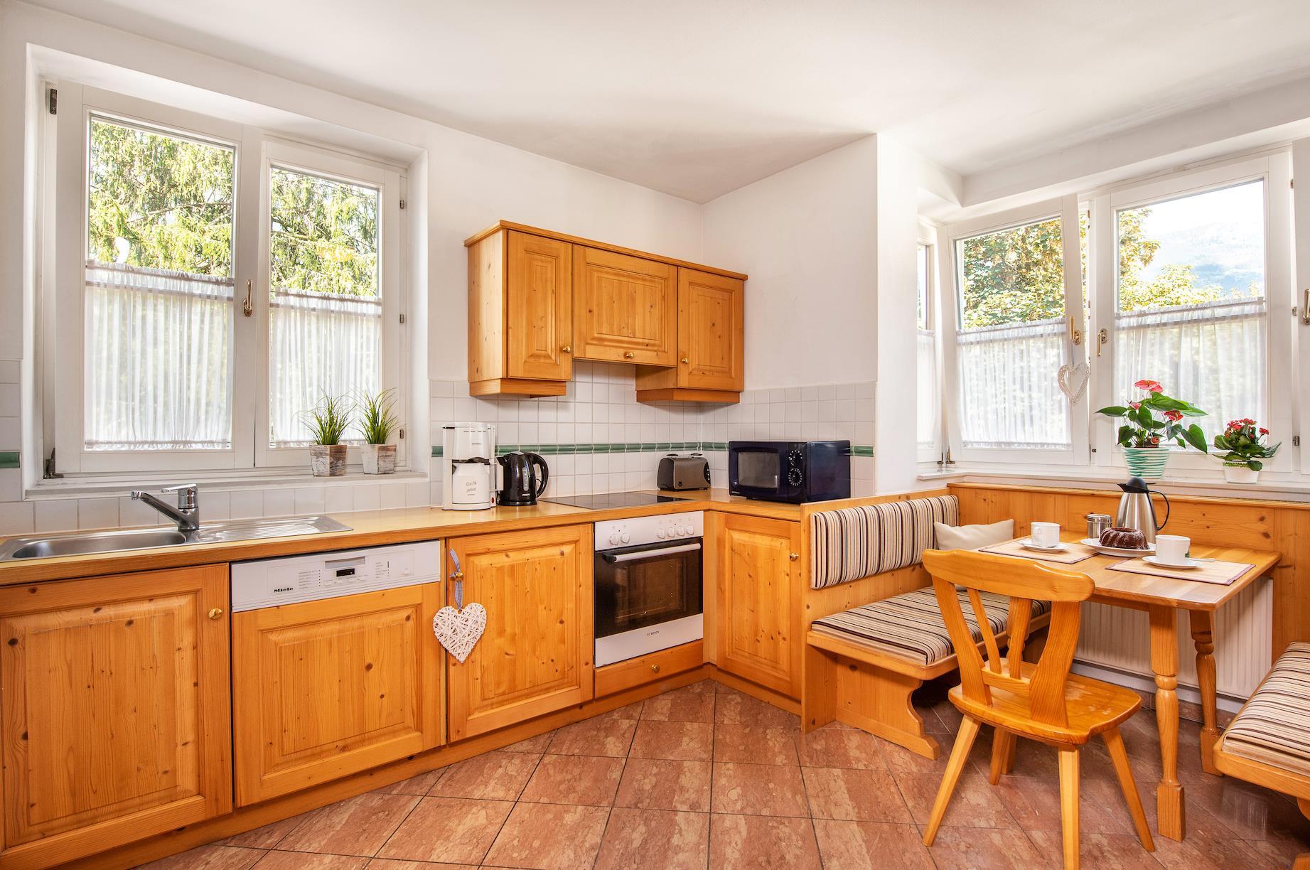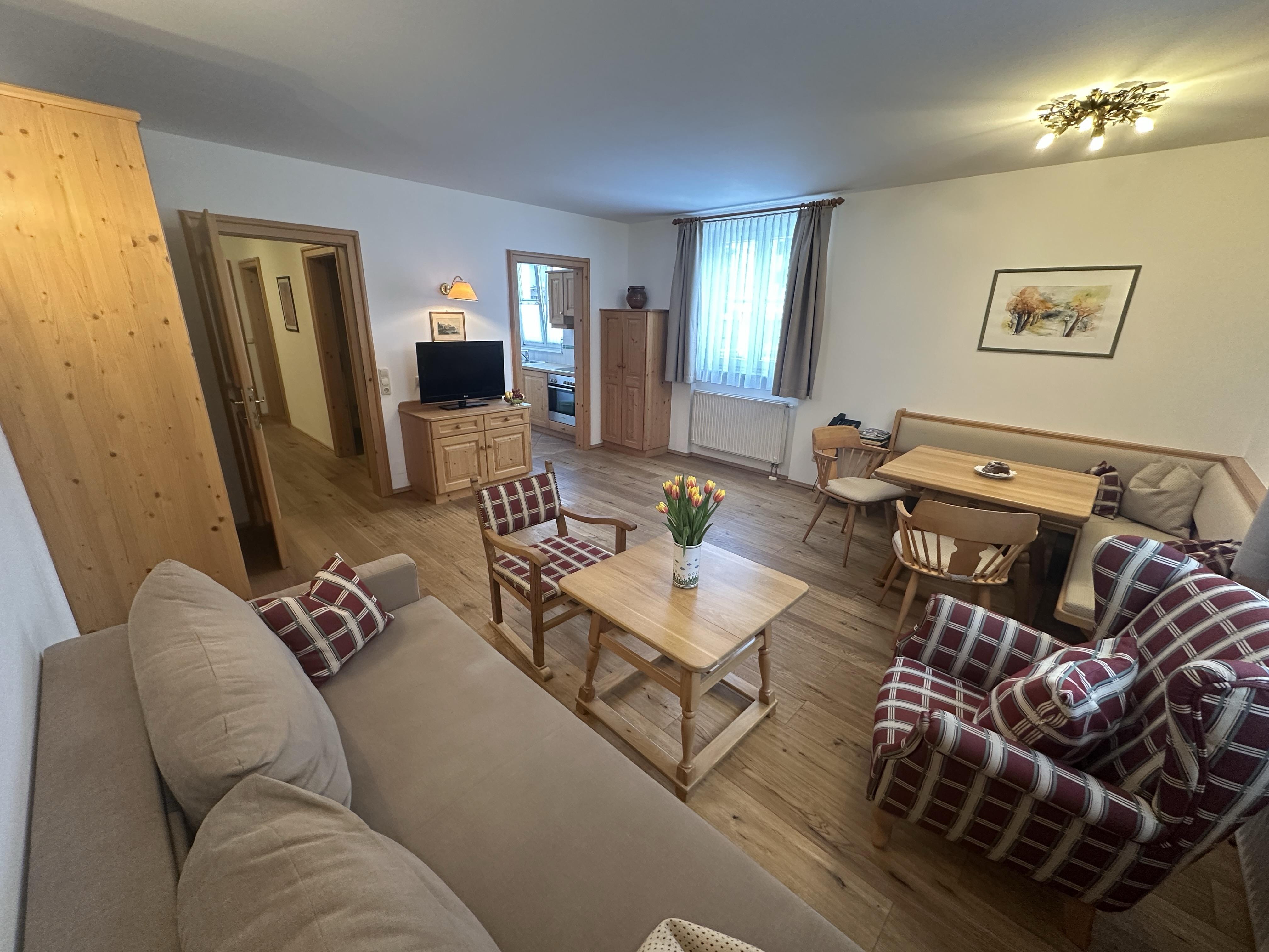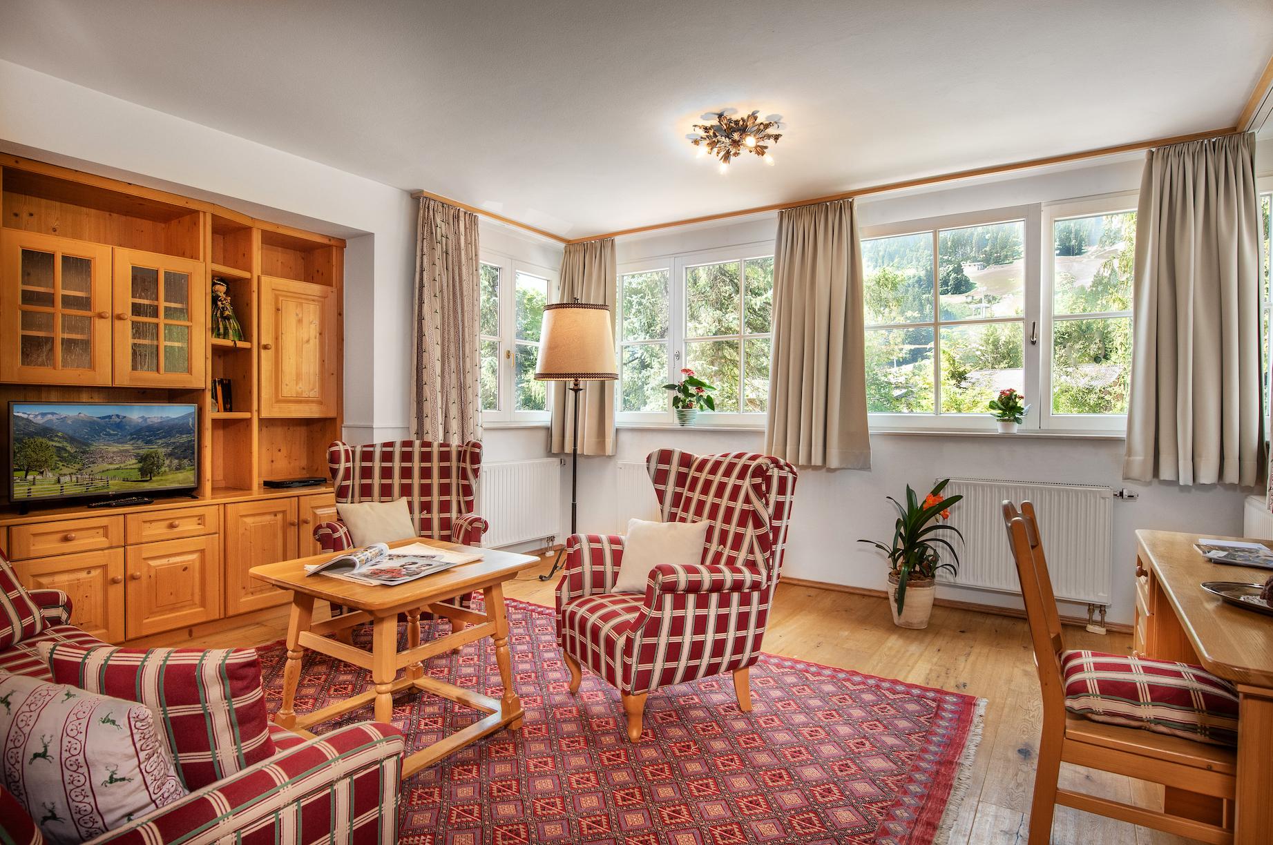 Our family-run Villa St. Georg in Bad Hofgastein awaits you with generous and bright rooms that merge traditional as well as modern elements. Pamper your loved ones with a traditional meal prepared in the fully equipped apartment kitchen, before you enjoy it at the dining table or end the evening with a glass of wine in the cosy sitting corner. Every apartment comes with a bathroom with tub, a WC as well as with a hair dryer and a television. Our elevator ensures that you can comfortably access your rooms. The apartments are also cleaned by us on a weekly, and/or against a small surcharge even on a daily basis. Your car can be parked in our underground facility in the centre of Bad Hofgastein.