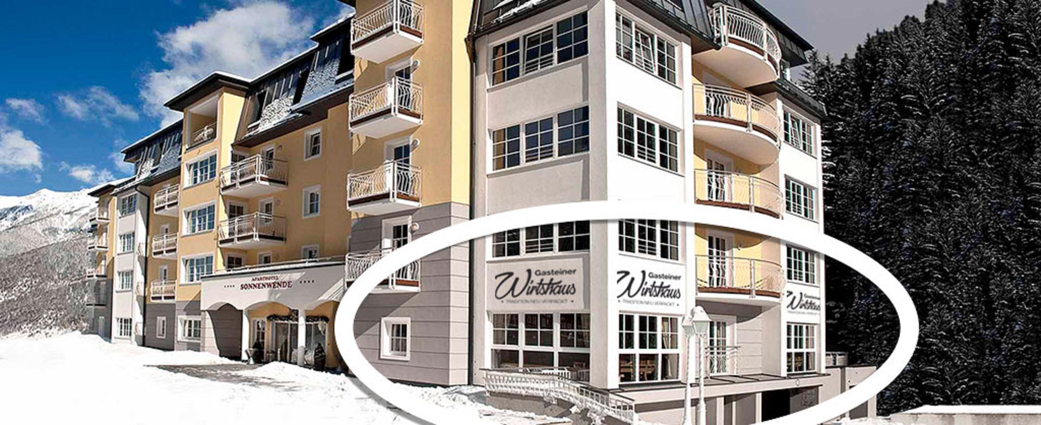 Our Gasteiner Wirtshaus in the Aparthotel Sonnenwende is located directly above the Gastein waterfall. From our terrace you have a great panoramic view over the whole valley. The center of Bad Gastein is only 200 m away.