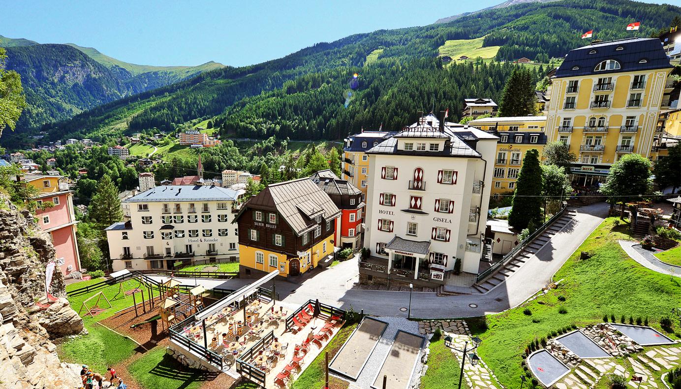 In a top location in the middle of Bad Gastein lies the *** Hotel Gisela. Only a few steps away from the Stubnerkogel cable car and the Felsentherme (thermal baths), you can stay with us exquisitely and enjoy all the benefits of a relaxing holiday in the Gasteinertal.